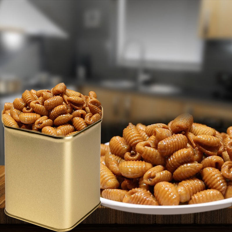 Experience the authentic taste of India's sweets with BellamGavvalu, also known as TeepiGavvalu. This traditional sweet snack adds joy to festive occasions. Our BellamGavvalu is perfectly crispy on the outside and wonderfully soft on the inside—just how you love it!